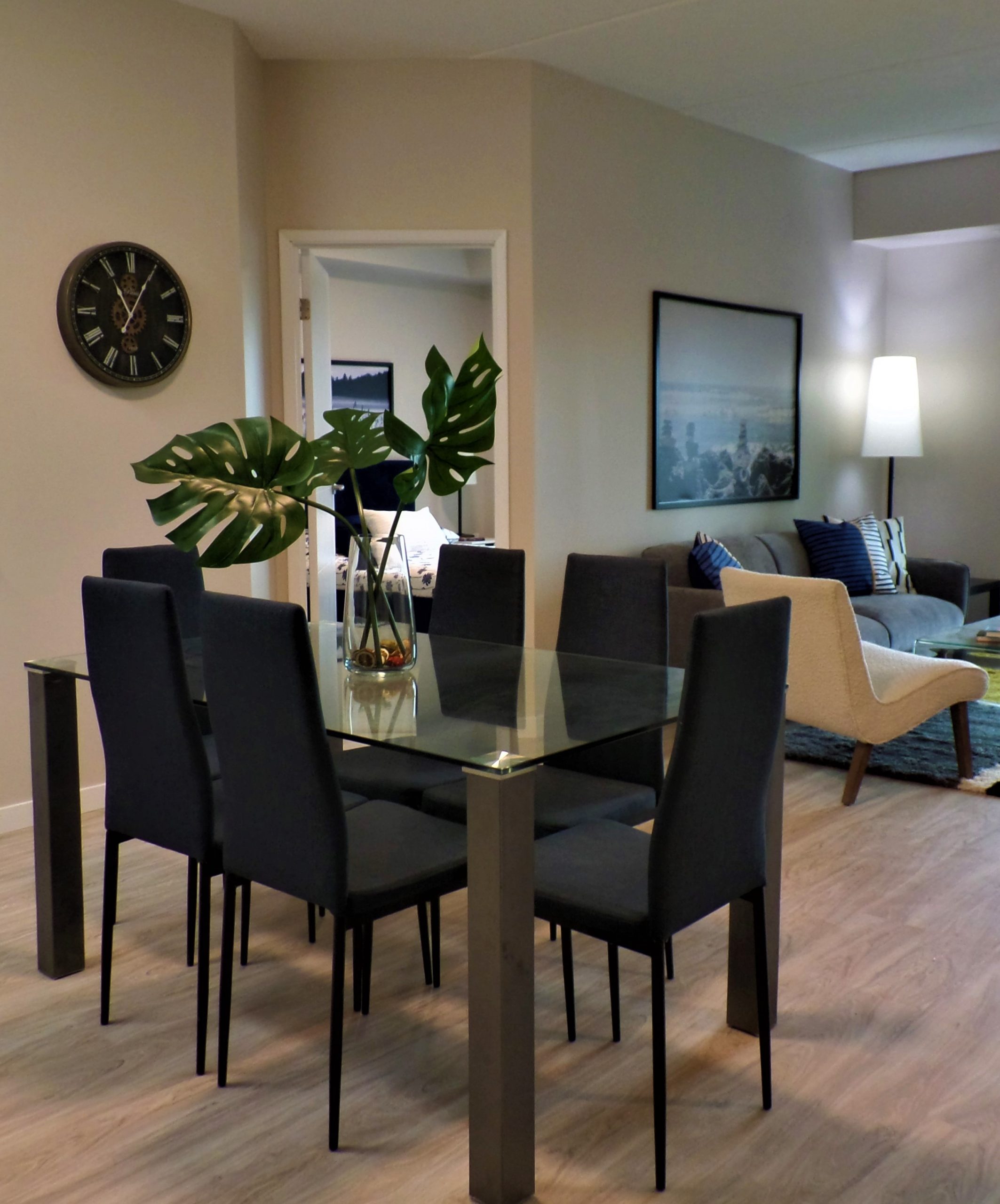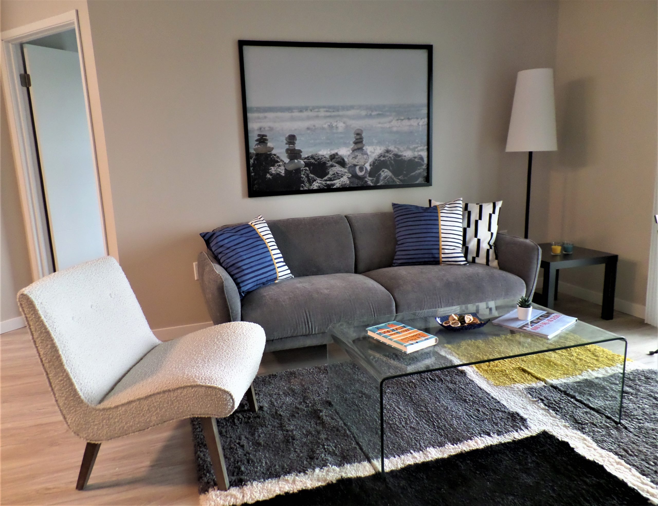 In the summer of 2019, we furnished two display suites – a 724 square foot one-bedroom and a 948 square foot two-bedroom. As we had a two-week deadline, everything had to be in-stock and ready to be delivered. Accessories were purchased off-the-shelf at a variety of shops.