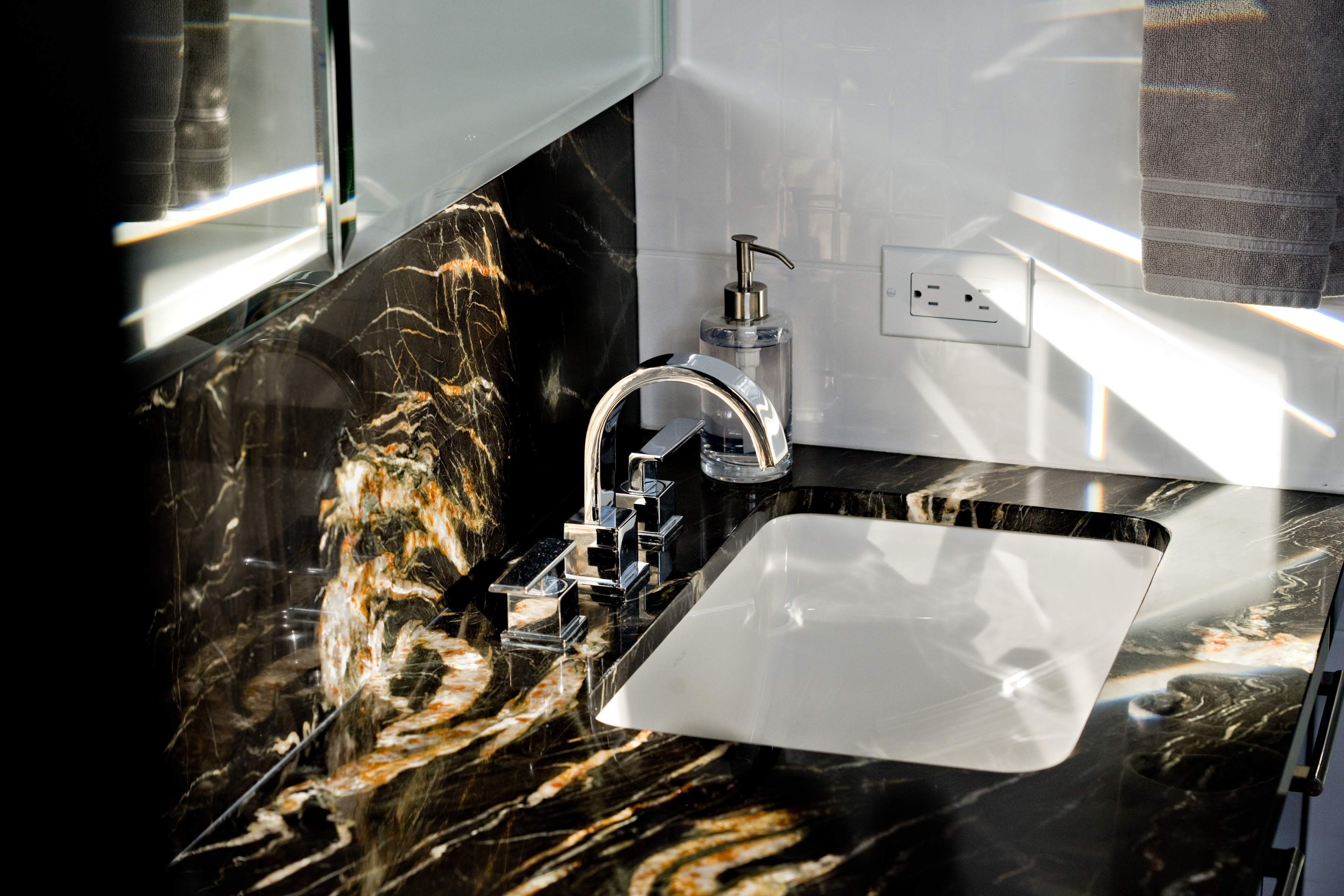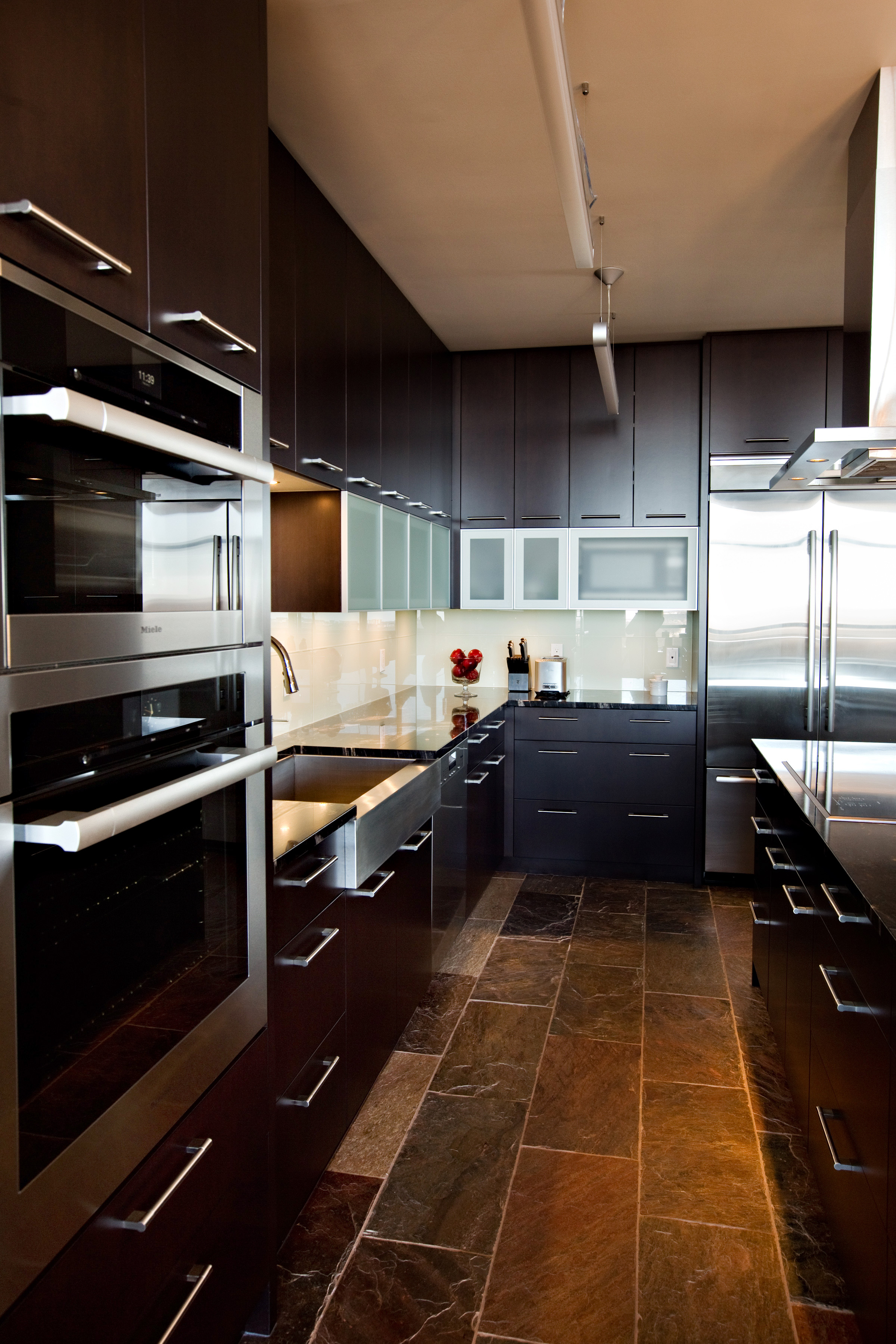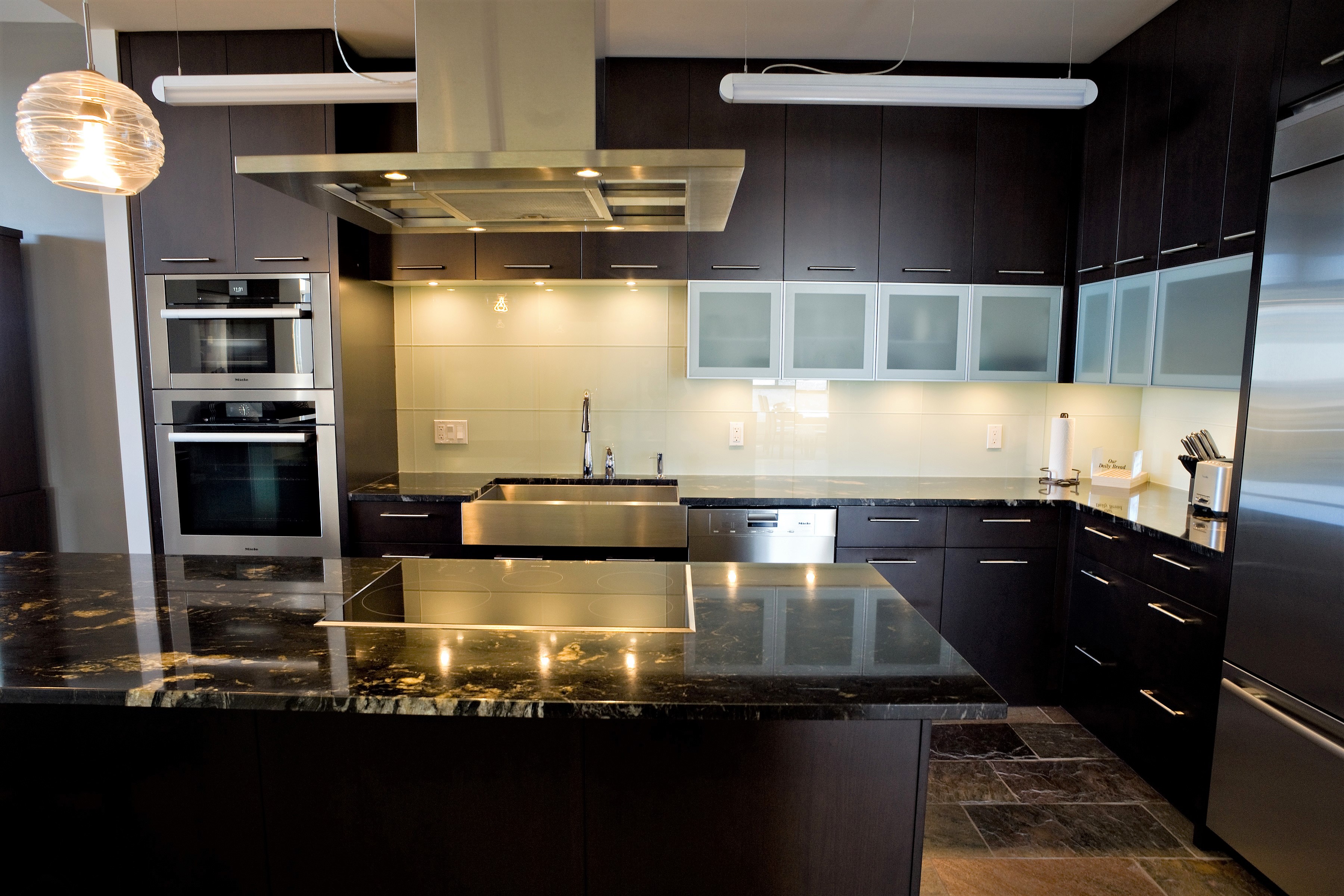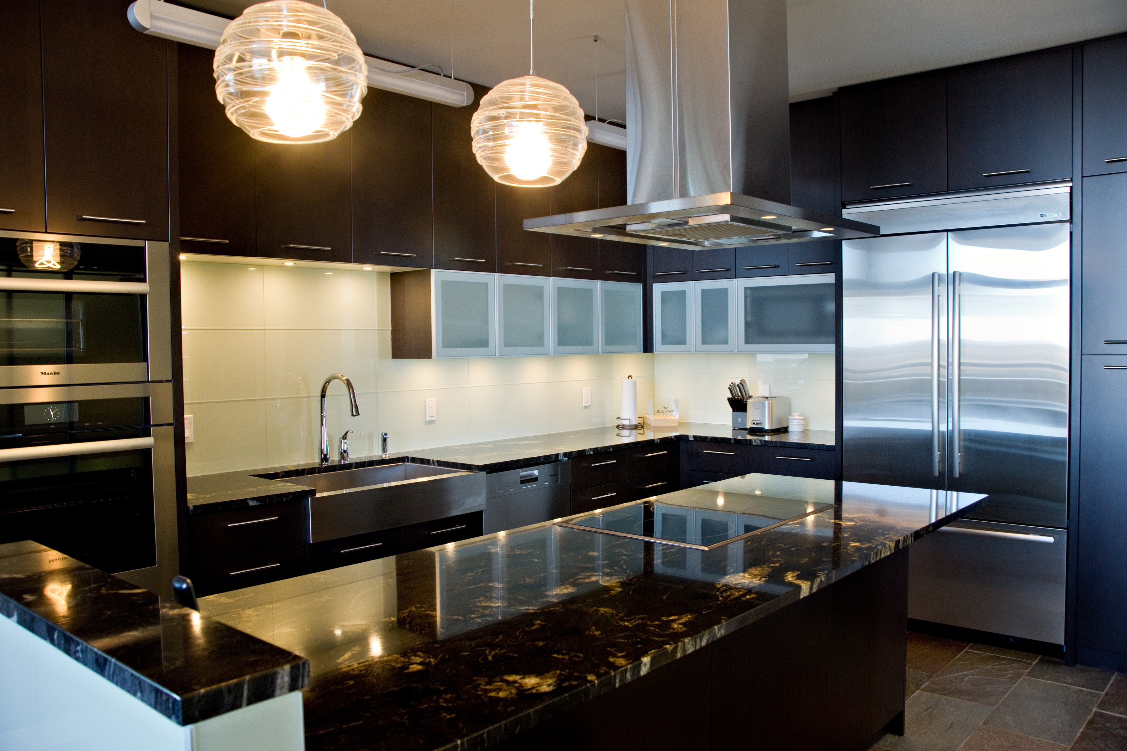 A dated space was extensively renovated to create something truly incredible. No surface was left untouched. The kitchen was opened to the dining room flooding the space with light. A lower granite pastry counter and space to house small appliances is concealed with three telescoping glass doors. The en suite is glammed up with high gloss grey cabinets, 24×24 lappato-finish floor tiles, and stone slabs that look like marble, but are a more-durable granite. When our clients moved onto their next adventure, their condo sold in less than 24 hours setting a record price for 160 Tuxedo Avenue.