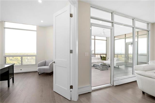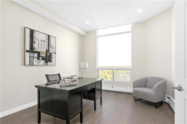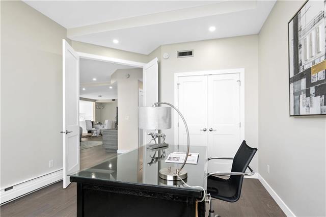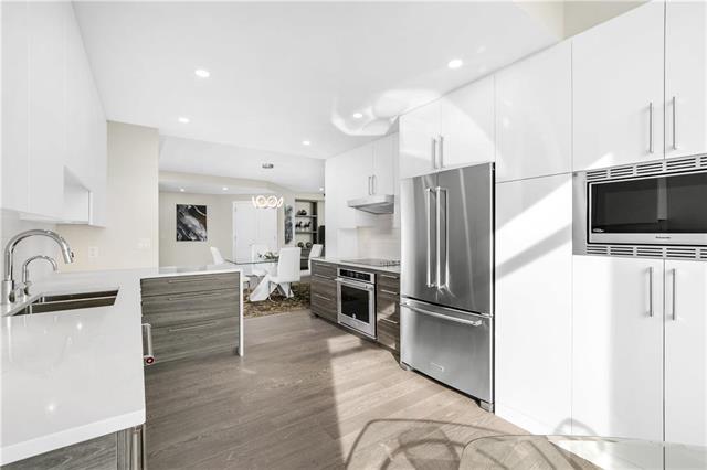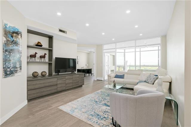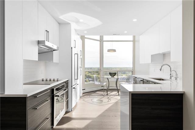 A select few condo-buildings in Winnipeg are in very high demand. New condo developments cannot compete with their quality of construction, services, suite sizes and locations. One enterprising contractor has been acquiring prime units to upscale and remarket. He sought our expertise to create a bespoke design for that niche market. To define the entry area, we carefully positioned an angled walk-in closet. Adding a custom built-in media unit stretched the width of the living room. A sliding digitally imaged glass door provided extra privacy for the master suite while doubling as a screen to hide the bar. A double door to the guest bedroom/ den opens up that room and extends the view. The kitchen was opened to the dining allowing light to stream in from floor-to-ceiling breakfast area windows. The new kitchen cabinets and marble-look counters wrap into the dining area, ending in a bar. Widened halls and doorways; and designer-grab-bars in the showers, allow for aging in place. The once-dated suite became bright and spacious; modern and luxurious.
